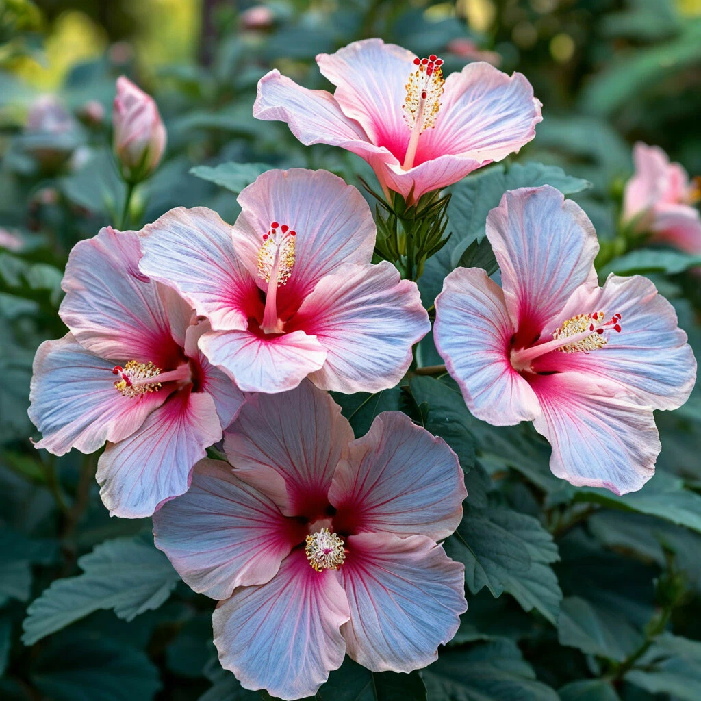 Садовый гибискус «Тропикал Сан» — настоящее украшение сада, которое радует своим цветением в течение всего лета. Его крупные розовые цветки с белой сердцевиной, словно тропическое солнце, привлекают взгляды и дарят ощущение тепла и радости. Представьте, как этот прекрасный гибискус будет смотреться на фоне зелени листвы, создавая неповторимый колорит в вашем саду!